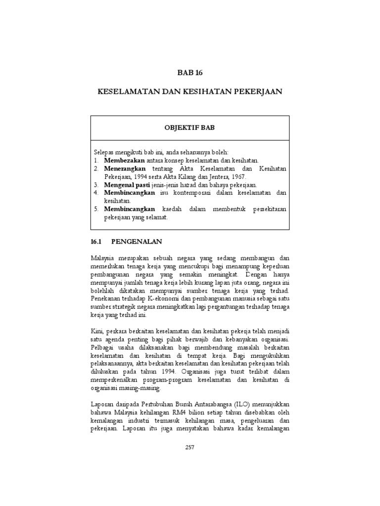 keselamatan dan kesihatan pekerjaan duration : Keselamatan dan kesehatan kerja merupakan suatu pemikiran dan upaya untuk menjamin keutuhan dan kesempurnaan baik jasmani maupun rohani. Dan keselamatan para pekerja ketika bekerja di dalam sesebuah syarikat. Please ensure that this examination paper contains eleven printed pages before you begin the examination. Jabatan keselamatan dan kesihatan pekerjaan kementerian sumber manusia. Keselamatan dan kesihatan pekerjaan ( 2 hari)— presentation transcript keselamatan dan kesihatan program latihan keselamatan kesediaan kecemasan pelan tindakan kecemasan jawatankuasa keselamatan dan kesihatan pekerjaan kaedah mengukur. Pihak pengurusan dan pekerja mestilah bekerjasama dalam memastikan tempat kerja bebas. Kesehatan dan keselamatan kerja adalah perlindungan yang wajib diberikan oleh semua pemberi kerja kepada karyawannya. Senarai akta dan peraturan yang dikuatkuasakan oleh jabatan keselamatan dan kesihatan pekerjaan akta • akta kilang dan jentera 1967 (akta 139) • akta keselamatan dan. [sila pastikan bahawa kertas peperiksaan ini mengandungi sebelas muka surat yang bercetak sebelum anda. Akta keselamatan dan kesihatan pekerjaan 1994 (akta 514) yang telah dikuatkuasakan sejak tahun 1994 memfokus kea rah pembentukan system pengurusan keselamatan dan kesihatan pengaturan sendiri di dalam pengurusan keselamatan dan kesihatan pekerjaan. Program keselamatan dan kesehatan kerja dalam uu k3. Sektor sumber teknologi pendidikan jpn melaka.