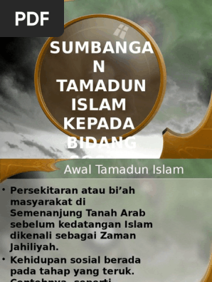 Bab 5 Sumbangan Tamadun Islam Terhadap Peradaban Dunia from image.slidesharecdn.com Namun, masih terdapat sebahagian bentuk budaya atau adat dari pengaruh hindu sebelumnya diamalkan seperti adat bersanding dalam majlis perkahwinan dan lainlain. Kedatangan islam telah membawa perubahan menyeluruh kepada sistem kehidupan masyarakat alam melayu seperti akidah atau agama, sosial, politik, pemikiran, perundangan, ilmu pengetahuan dan sebagainya. (iii) perkembangan pesat tamadun islam di sepanyol telah melahirkan budaya ilmu yang cemerlang hasil hubungan antara orang islam, yahudi, dan kristian. Sesungguhnya tamadun islam yang terbina di malaysia sejak kedatangan islam ke tanah melayu lebih 500 tahun dahulu telah menjadi pemangkin kepada perubahan dalam semua aspek kehidupan umat islam sama ada dalam aspek politik, ekonomi, sosial, pendidikan dari sebagainya. Save save sumbangan tamadun islam dalam bidang sains sosial for later 100% 100% found this document useful, mark this document as useful 0% 0% found this document not useful, mark this document as not useful Empayar bani abbasiyah telah mengetuai pemerintahan umat islam selama 508 tahun iaitu bermula seawal 750 masehi sehingga 1258 masehi iaitu setelah serangan tentera barbar mongol ke atas kota 1001 malam empayar. Ilmu pengetahuan islam menuntut setiap orang mencari ilmu & mengamalkan ilmu yang dipelajari. Sumbangan tamadun islam dalam bidang teknologi perhubungan dalam sejarah umat manusia 1 mahayudin bin hj yahaya mhy@unissa.edu.bn (mahayuddin.yahaia@unissa.edu.bn) universiti islam sultan sharif ali, negara brunei darussalam abstrak bidang teknologi perhubungan merupakan sumber insperasi dan wadah kedaulatan dan